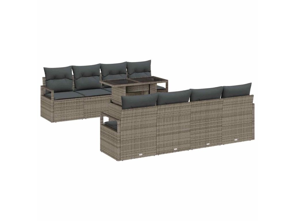 Sada zahradních pohovek s polštářem 9 pcs Šedá Poly ratan 3357522