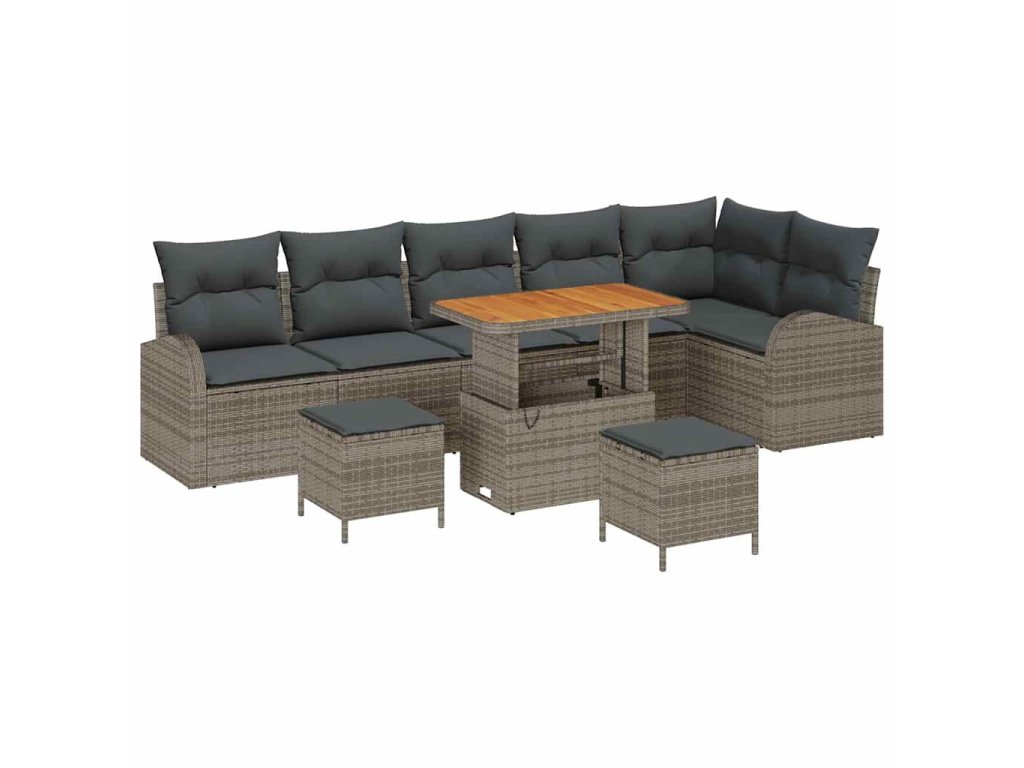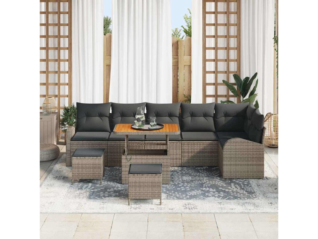 Sada zahradních pohovek s polštářem 9 pcs Šedá Poly ratan 3362418