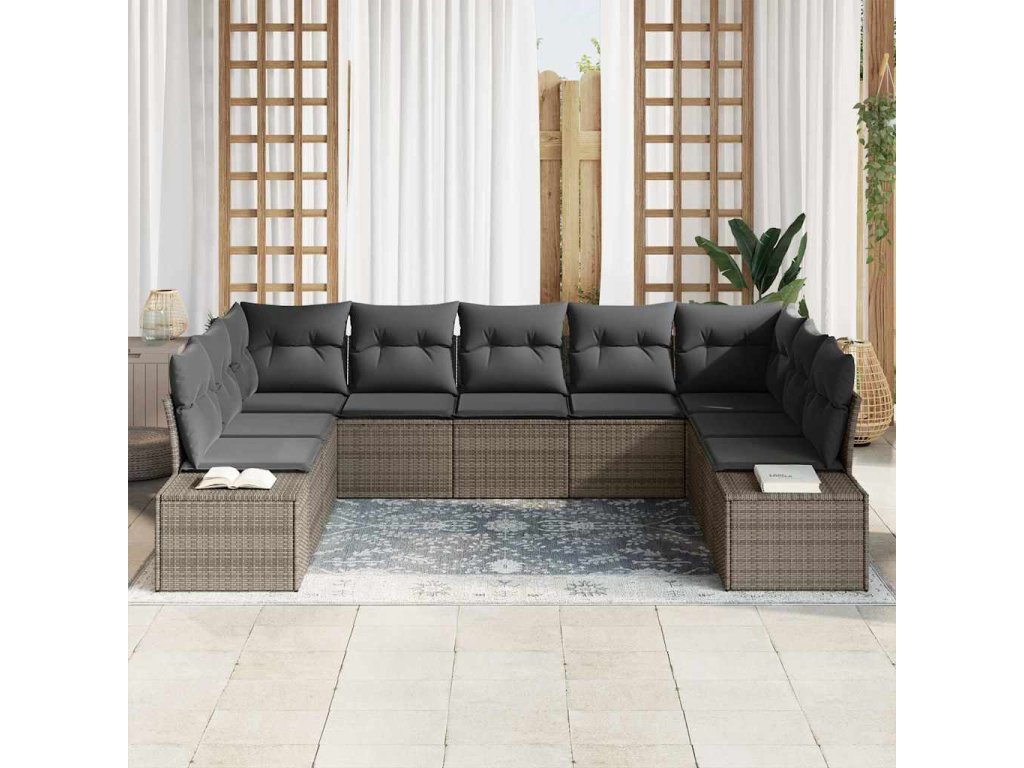 Sada zahradních pohovek s polštářem 9 pcs Šedá polyratan 3347219