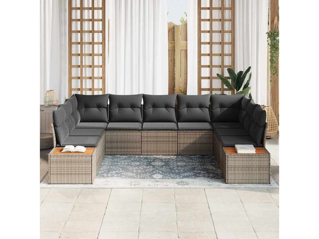 Sada zahradních pohovek s polštářem 9 pcs Šedá polyratan 3348165
