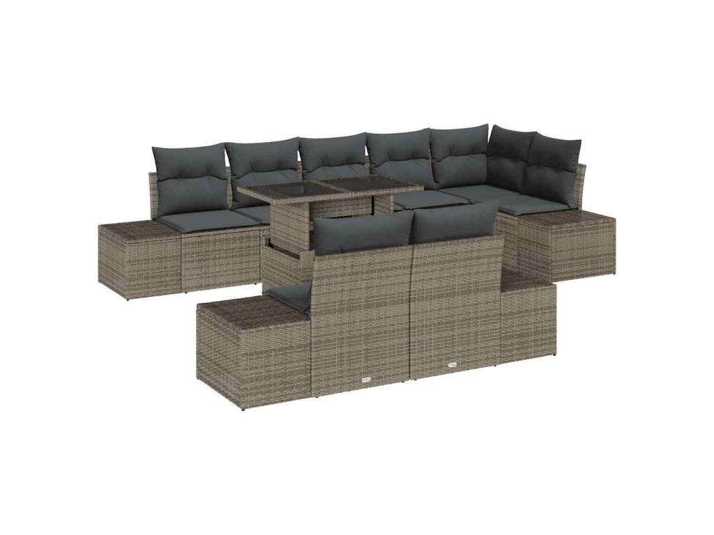 Sada zahradních pohovek s polštářem 9 pcs Šedá polyratan 3349205