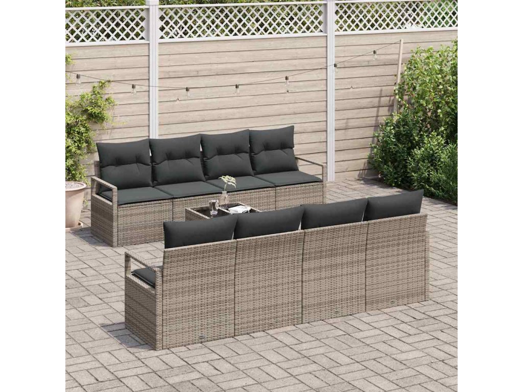 Sada zahradních pohovek s polštářem 9 pcs Šedá polyratan 3354978