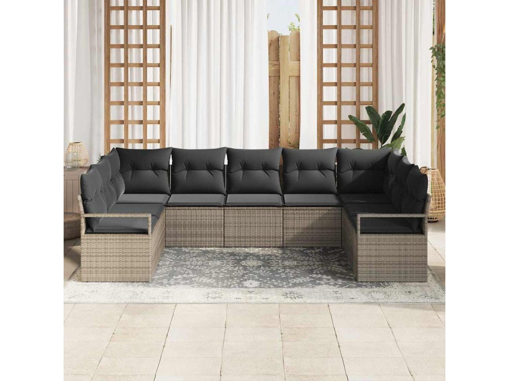 Sada zahradních pohovek s polštářem 9 pcs Šedá polyratan 3355208