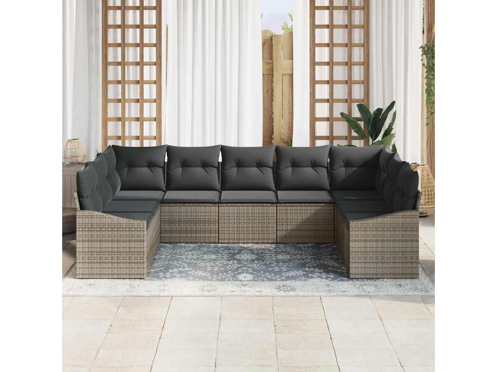 Sada zahradních pohovek s polštářem 9 pcs Šedá polyratan 3355548