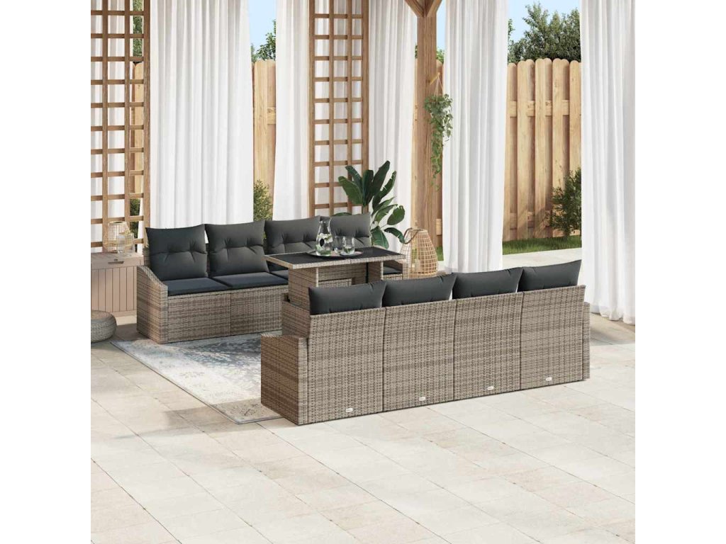 Sada zahradních pohovek s polštářem 9 pcs Šedá polyratan 3357702