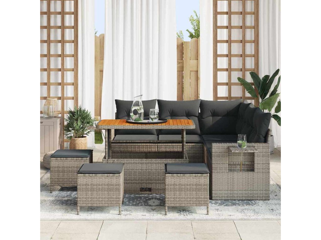 Sada zahradních pohovek s polštářem 9 pcs Šedá polyratan 3361753