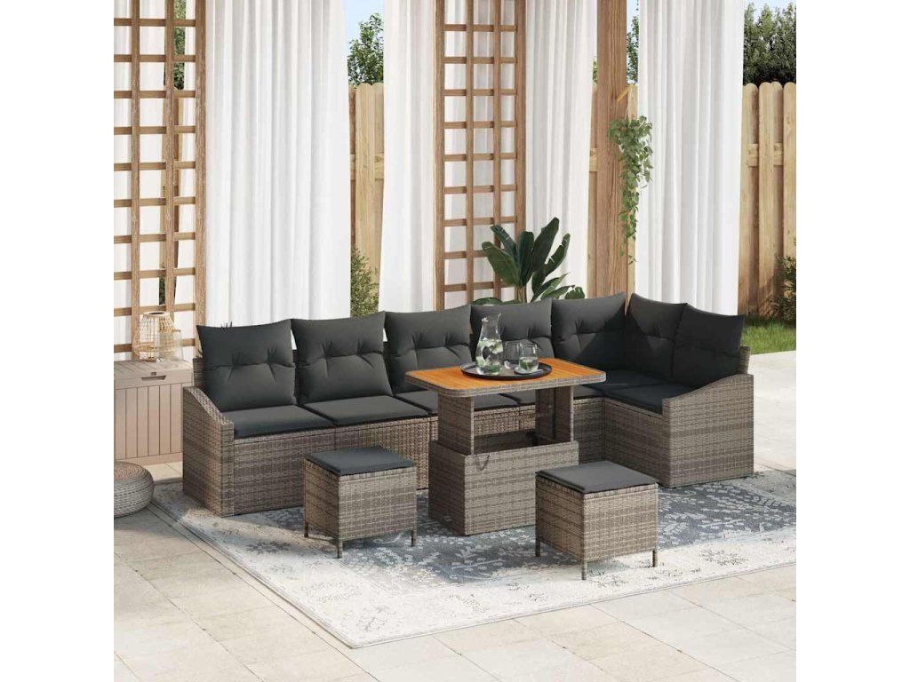 Sada zahradních pohovek s polštářem 9 pcs Šedá polyratan 3362678