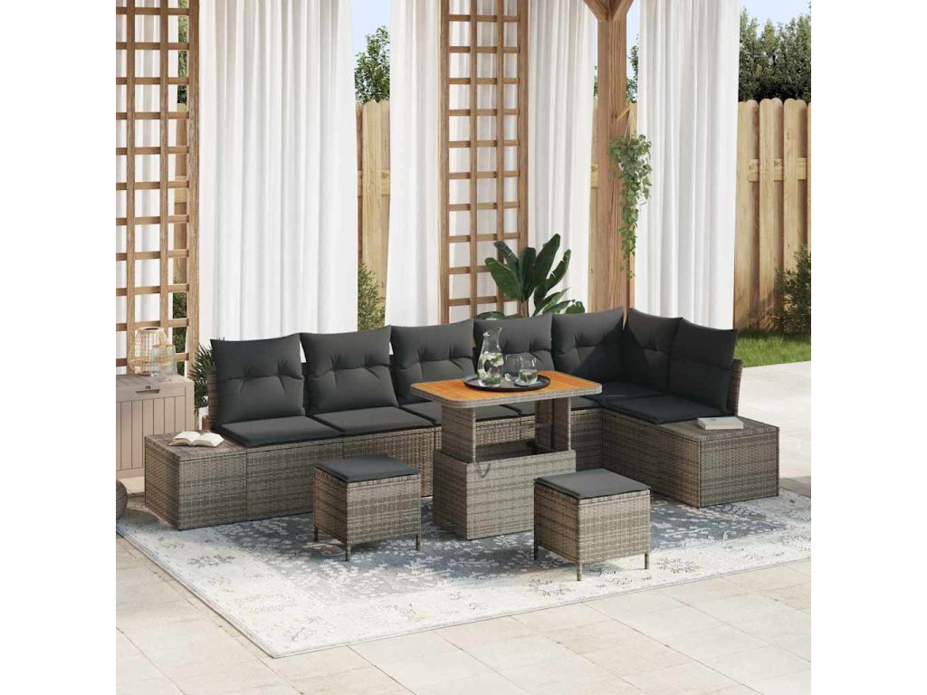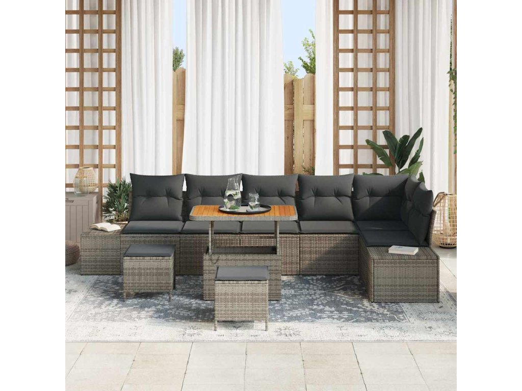 Sada zahradních pohovek s polštářem 9 pcs Šedá polyratan 3362808