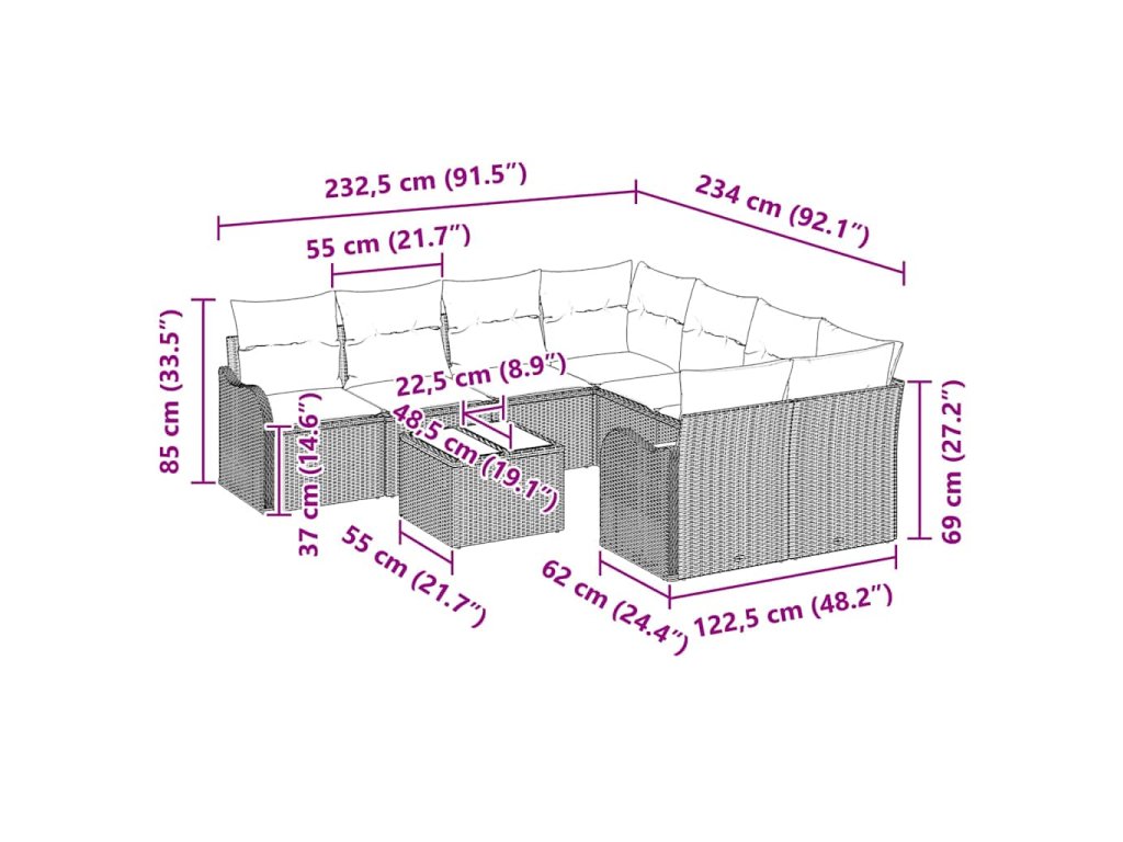 - Celkové rozměry: 234 x 232,5 x 85 cm (D x Š x V)