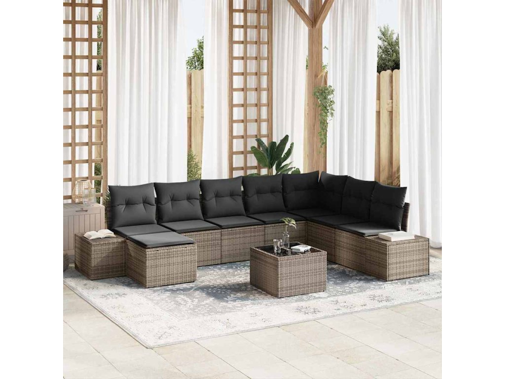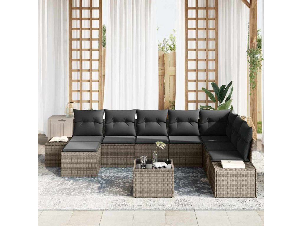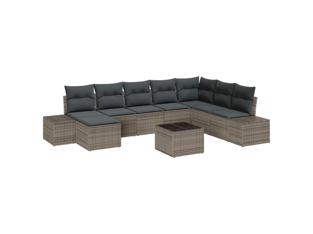 Sada zahradních pohovek s polštářem 9 pcs Světle šedá polyratan 3347189