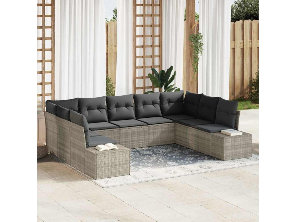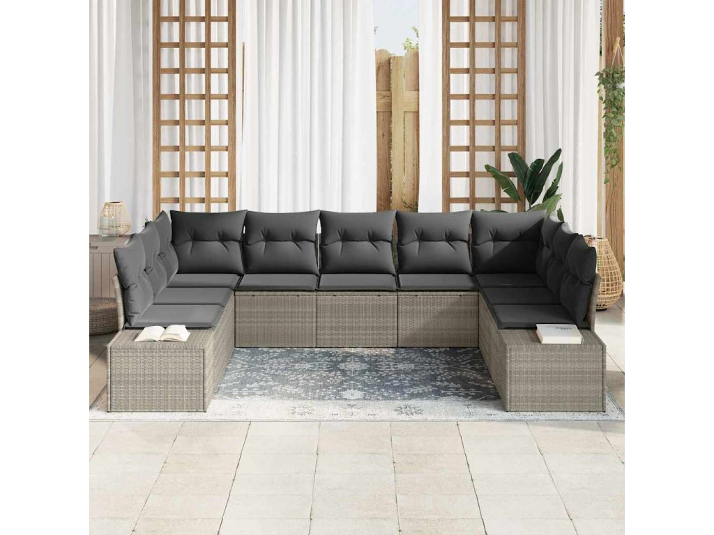 Sada zahradních pohovek s polštářem 9 pcs Světle šedá polyratan 3347222