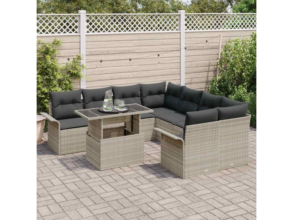 Sada zahradních pohovek s polštářem 9 pcs Světle šedá polyratan 3348258