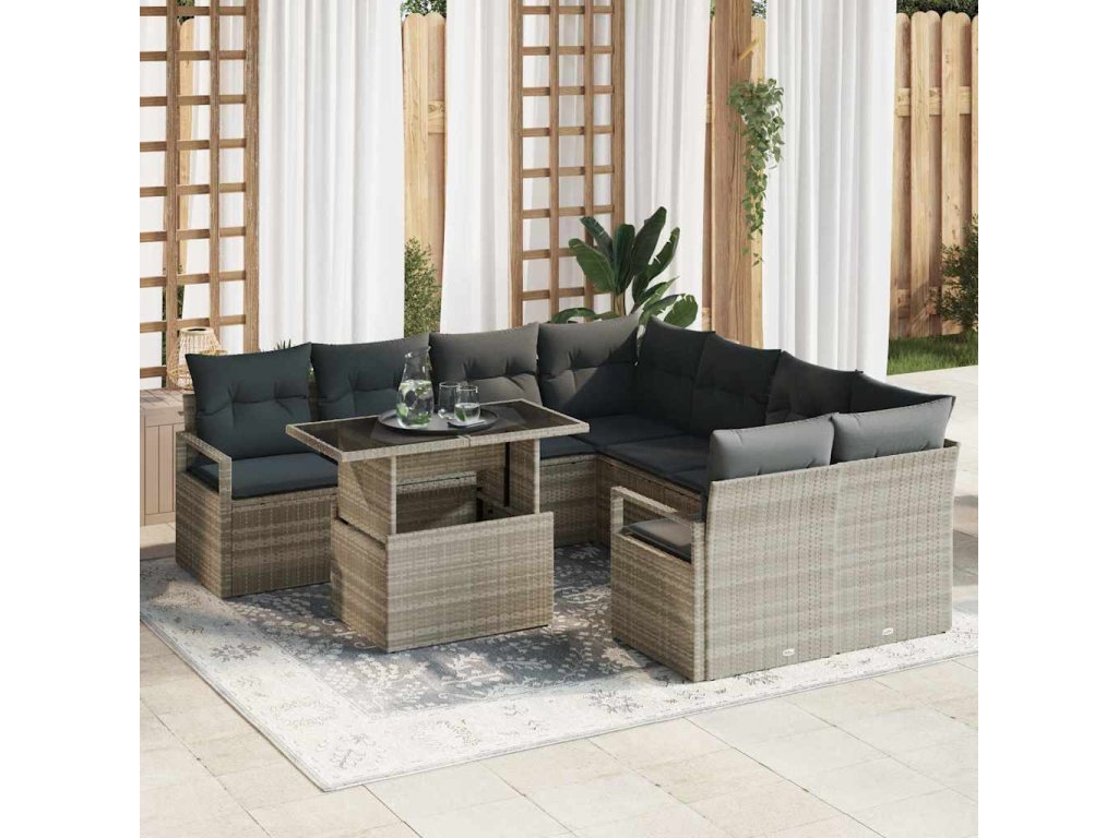 Sada zahradních pohovek s polštářem 9 pcs Světle šedá polyratan 3348798