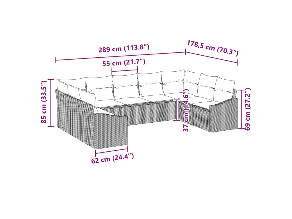 - Součásti: Každý kousek má design i zádovou část, takže vypadá skvěle z jakéhokoliv úhlu. Součástí jsou sedací polštáře se zipem pro snadné sundání a mytí, což zaručuje komfort a praktičnost. Zakřivené opěrky rukou vyrobené z polyratanu doplňují vzhled a zvyšují pohodlí.