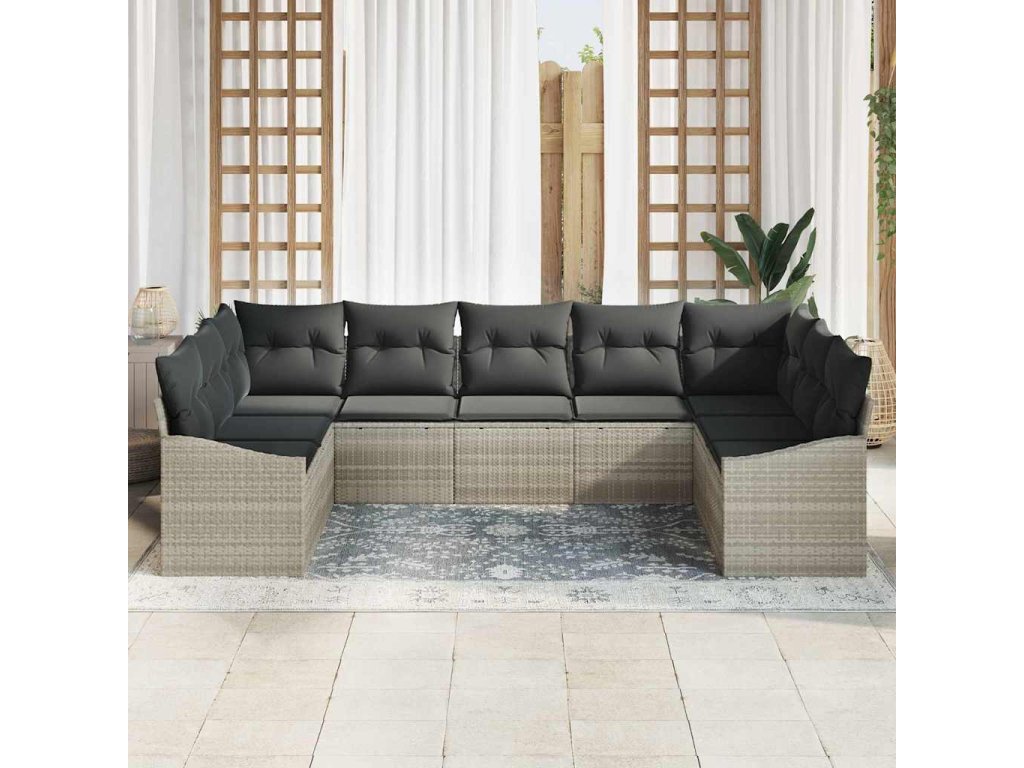 Sada zahradních pohovek s polštářem 9 pcs Světle šedá polyratan 3355551
