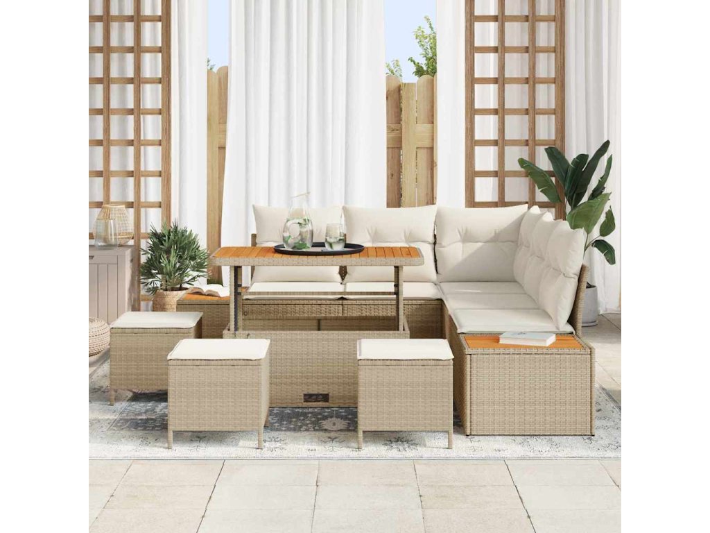 Sada zahradních pohovek s polštářem Béžová Poly ratan 3364871