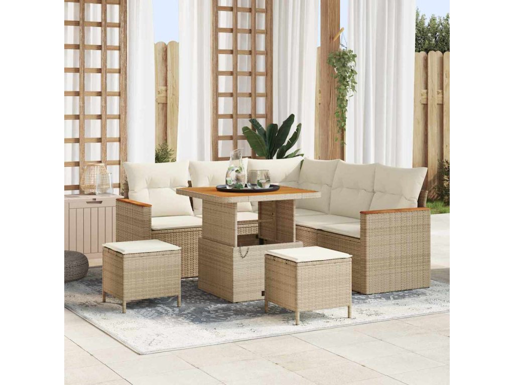 Sada zahradních pohovek s polštářem Béžová Poly ratan 3364991