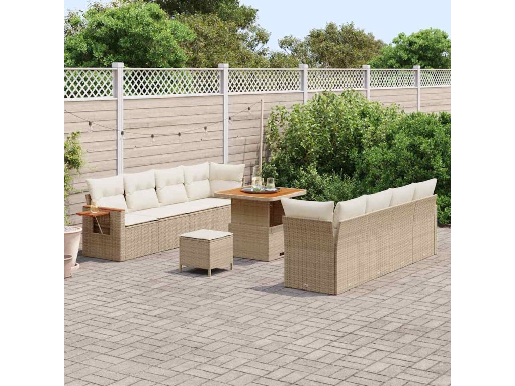 Pevné materiály: Užij si trvanlivost s poly ratanu a práškově lakovanou ocelí. Tato kombinace zajišťuje sílu a dobrý vzhled, což poskytuje spolehlivé sezení pro všechny druhy venkovních zábav. Zaměřený design: Set má pohodlná sedadla, opěradla a loketní opěrky z poly ratanu, které tě podpoří tak, jak má. Polštáře jsou odolné vůči počasí a masivní akáciové dřevo dodává příjemný teplý pocit. Flexibilní vlastnosti: Jeho modulární design se přizpůsobí jakékoli příležitosti, od rodinných setkání po větší párty. Navíc má UV-odolné vlastnosti, takže zůstane krásný a funkční i na sluníčku. Víceúčelové použití: Ideální pro zahrady a terasy, tento set se hodí na všechny akce, od ranního brunchu po elegantní večery s koktejly. Je to chytrá volba pro každého, kdo chce přidat kousek elegance do svého venkovního prostoru. Tipy na údržbu: Udržuj ho pěkný otíráním vlhkým hadříkem a používáním ochranného krytu, když ho nepoužíváš. Nejlépe je přenést polštáře dovnitř, když je špatné počasí, aby byly v top stavu a tvůj venkovní prostor tě pořád lákal k odpočinku.- Barva: Béžová