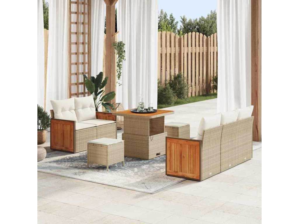 Top Materiály Vyrobeno z polyratanu a práškově lakované oceli, tahle sada je navržená tak, aby dlouho vydržela a vypadala skvěle. Tkaný styl polyratanu jí dodává moderní vzhled a je UV odolná. Ocelový rám je silný a vše drží pohromadě. Flexibilní Uspořádání Tato modulární konstrukce ti umožňuje přeskupit pohovky podle tvého venkovního prostoru. Můžeš měnit uspořádání na večírky, pohodové sezení s přáteli nebo lenošení o samotě. Praktické Úložiště Pohovky mají vestavěné úložné prostory, kam si můžeš schovat své věci. Tyhle prostory mají voděodolné tašky, takže tvé věci zůstanou suché, i když počasí nebude úplně ideální. Pohodlí a Styl Venkovní polštáře dodávají pohodlný dotek, perfektní na dlouhé chvíle venku. Jsou dost odolné na to, aby unesly různá počasí a zároveň pohodlí to ještě víc vylepšují. Snadná Údržba Udržet tuto sadu v dobrém stavu je jednoduché. Stačí ji zakrýt během deště a nezapomínat přenést polštáře dovnitř. Rychlé otření vlhkým hadříkem udržuje vše čisté a hezké.- Barva: Béžová