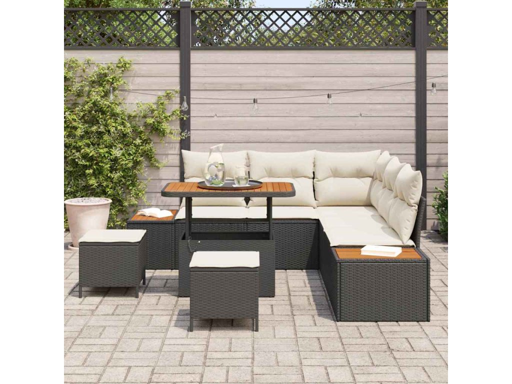 Sada zahradních pohovek s polštářem Černá Poly ratan 3364865
