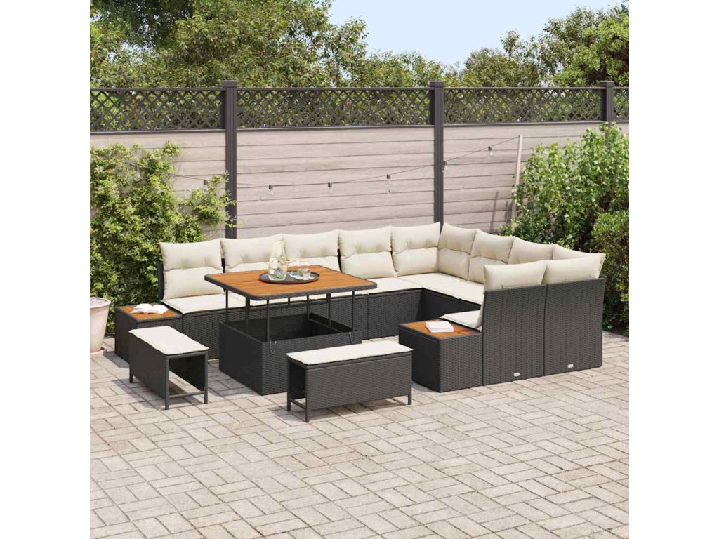 Sada zahradních pohovek s polštářem Černá Poly ratan 3364895