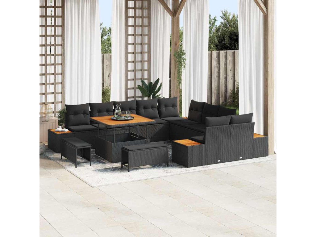 Sada zahradních pohovek s polštářem Černá Poly ratan 3364914