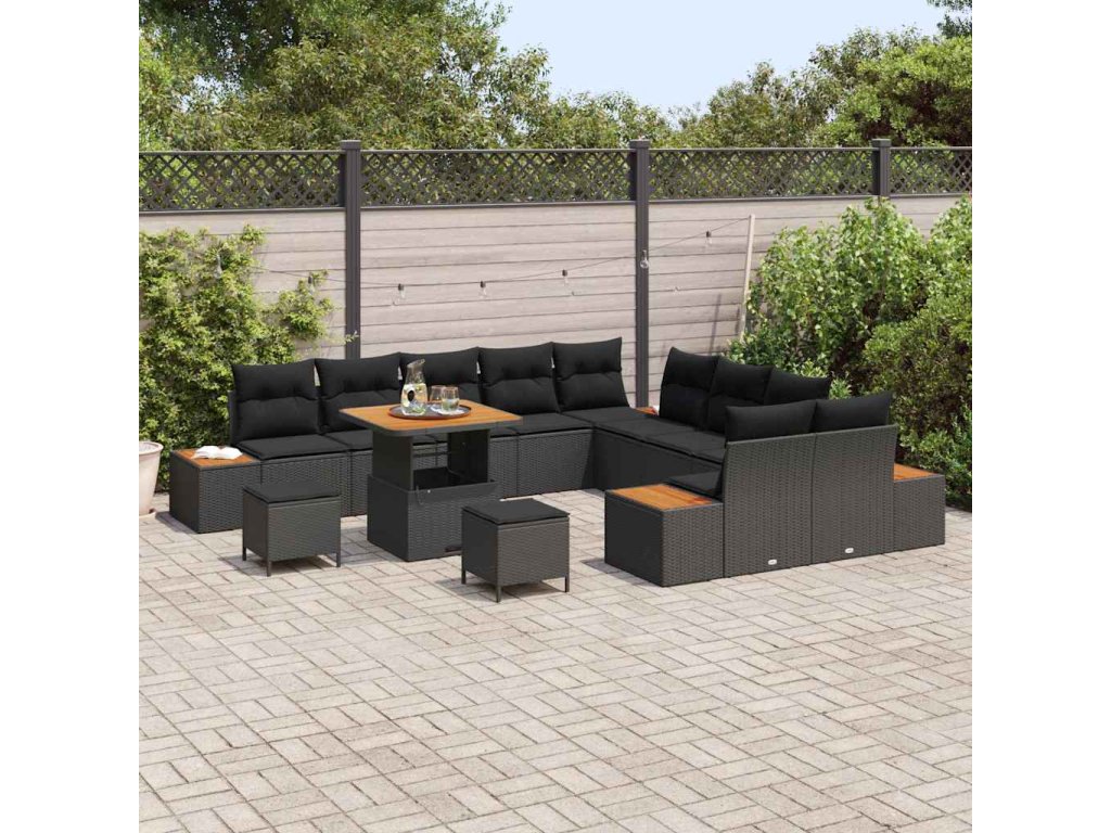 Sada zahradních pohovek s polštářem Černá Poly ratan 3364919