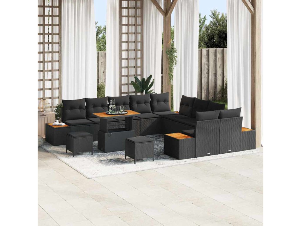 Sada zahradních pohovek s polštářem Černá Poly ratan 3364924
