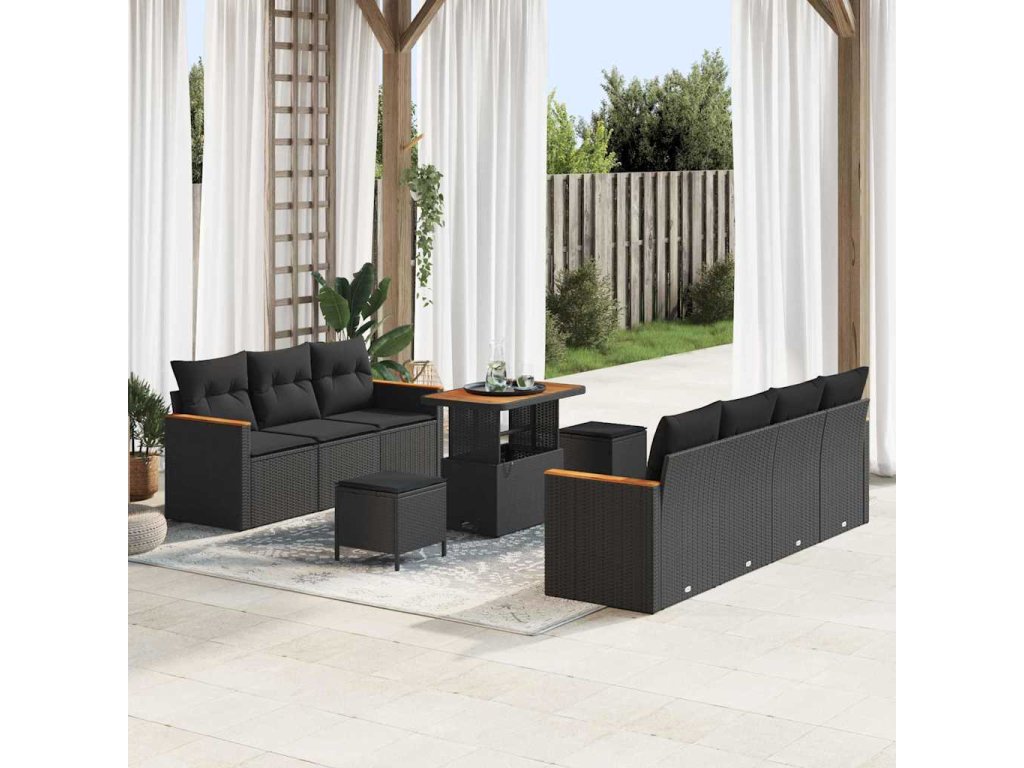 Sada zahradních pohovek s polštářem Černá Poly ratan 3364959