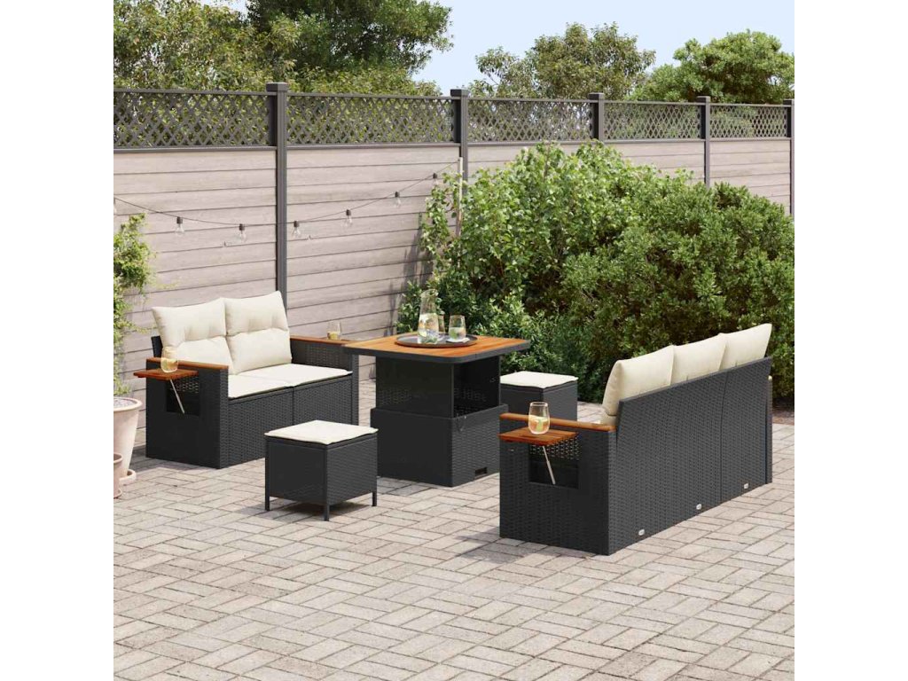 Sada zahradních pohovek s polštářem Černá Poly ratan 3365065
