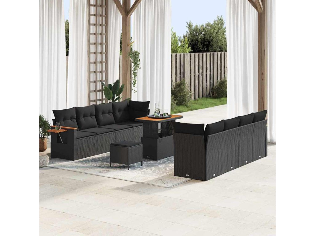 Sada zahradních pohovek s polštářem Černá Poly ratan 3365099