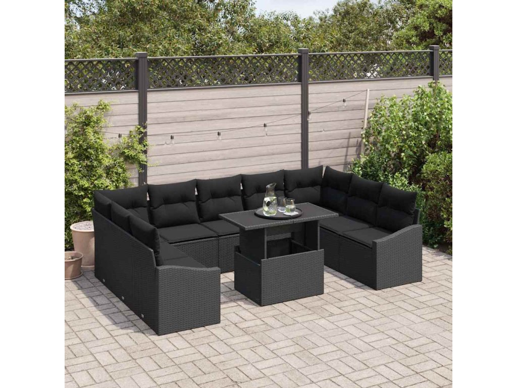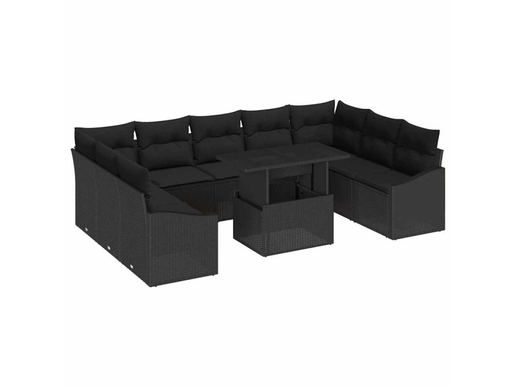 Sada zahradních pohovek s polštářem s úložištěm 10 pcs Černá 3357806