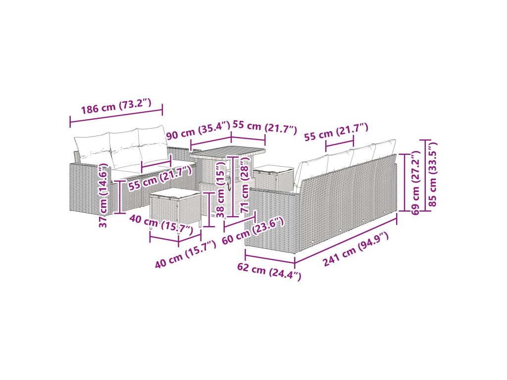 Sada zahradních pohovek s polštářem s úložištěm 10 pcs Černá 3363529
