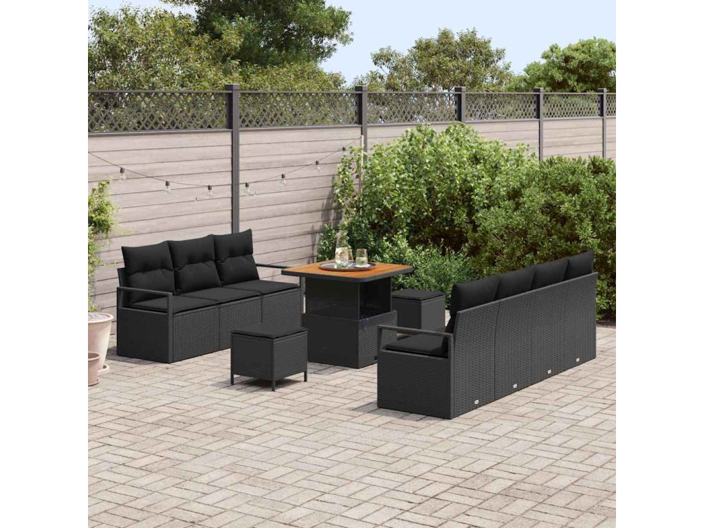 Sada zahradních pohovek s polštářem s úložištěm 10 pcs Černá 3364434