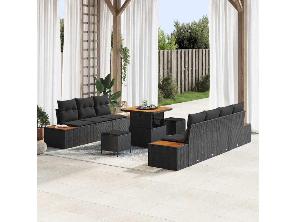 Sada zahradních pohovek s polštářem s úložištěm 10 pcs Černá 3364824
