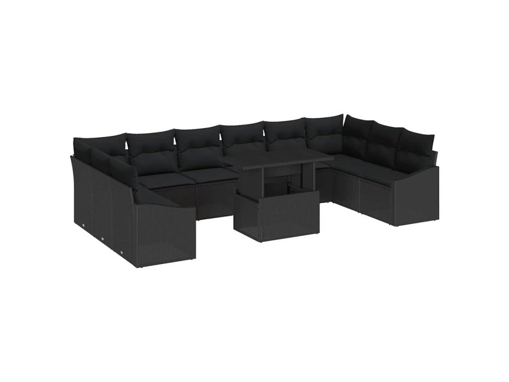 Sada zahradních pohovek s polštářem s úložištěm 11 pcs Černá 3357816