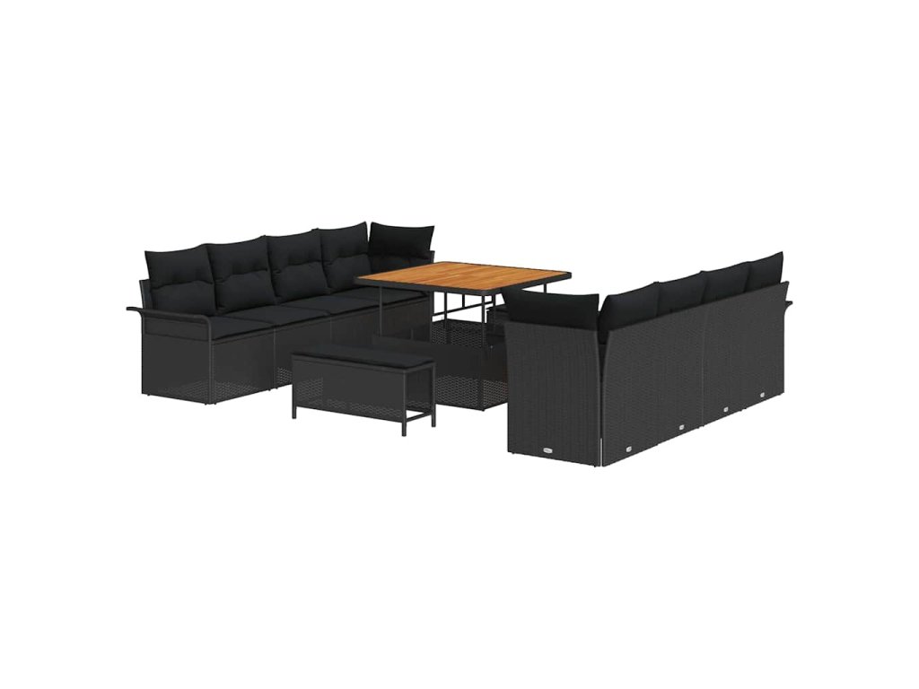 Sada zahradních pohovek s polštářem s úložištěm 11 pcs Černá 3364064