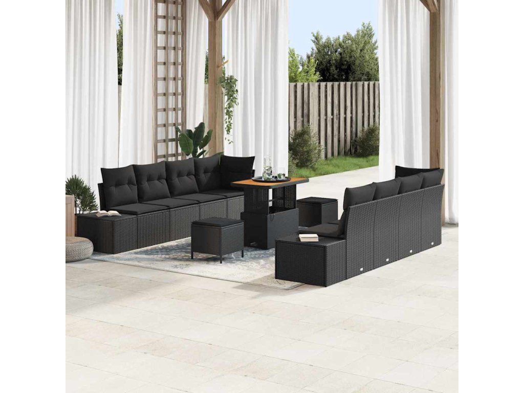 Sada zahradních pohovek s polštářem s úložištěm 11 pcs Černá 3364709