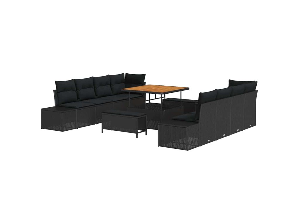 Sada zahradních pohovek s polštářem s úložištěm 11 pcs Černá 3364714