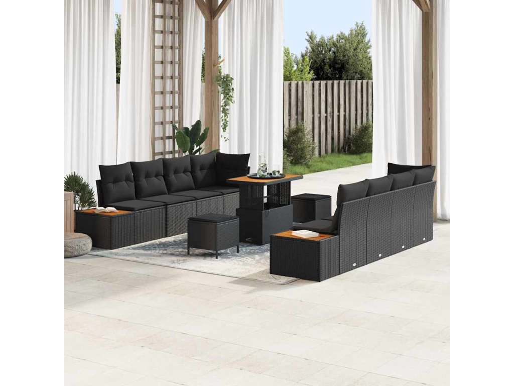 Sada zahradních pohovek s polštářem s úložištěm 11 pcs Černá 3364839