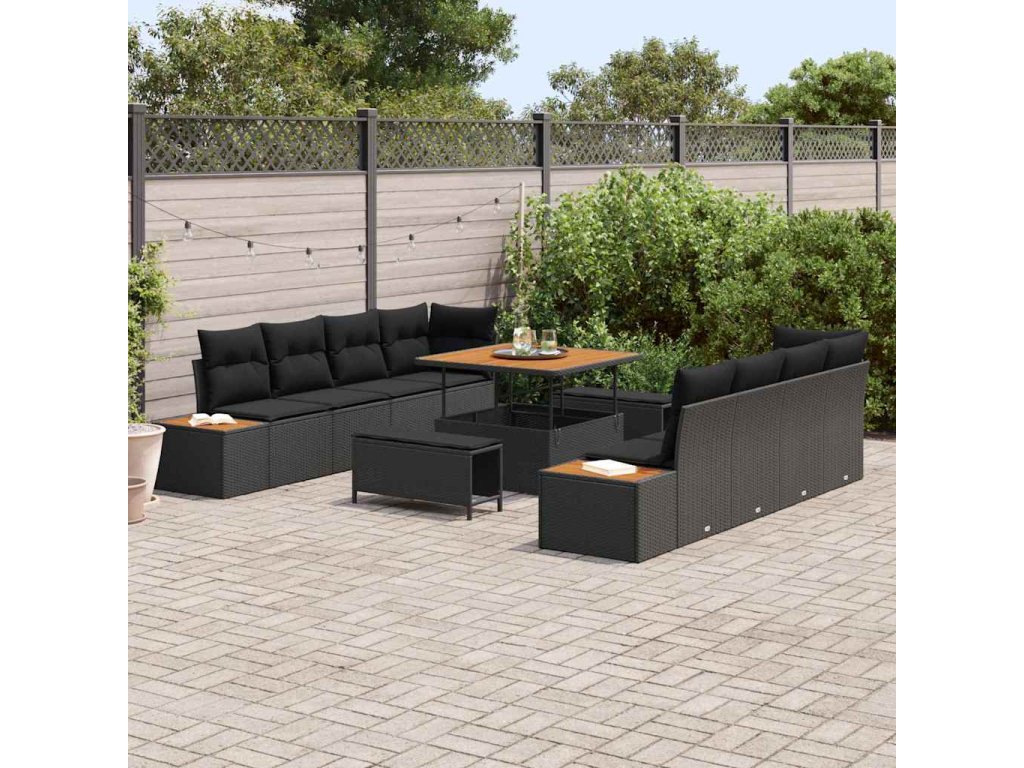 Sada zahradních pohovek s polštářem s úložištěm 11 pcs Černá 3364844