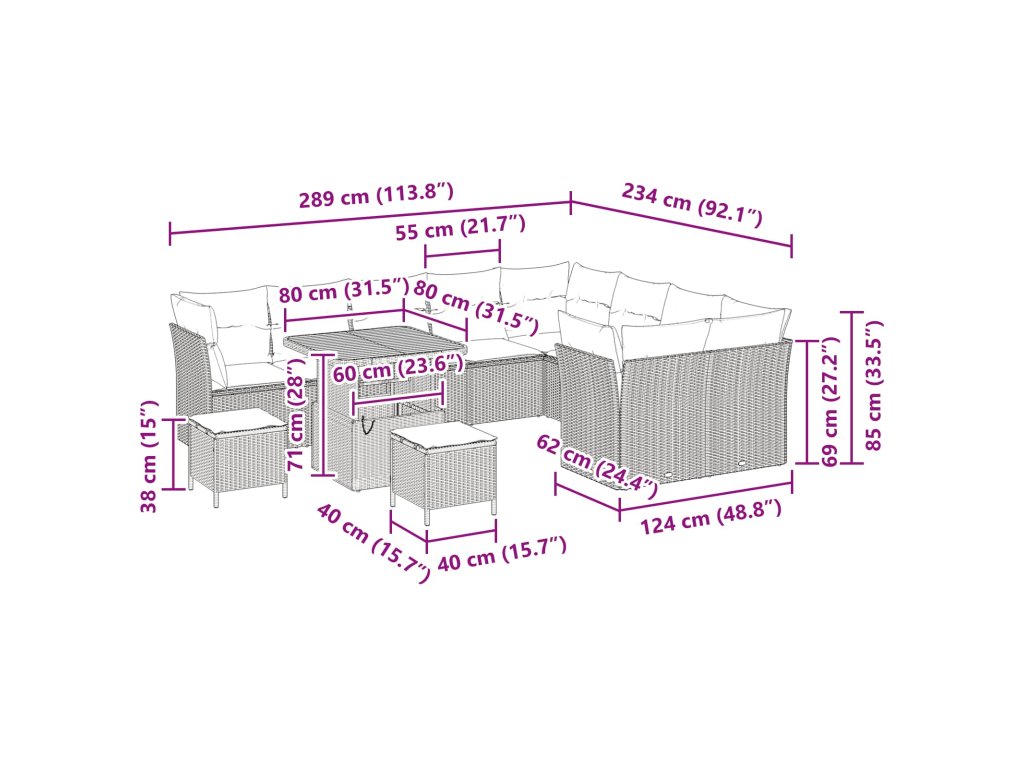 - Celkové rozměry: 80 x 80 x 71 cm (D x Š x V)