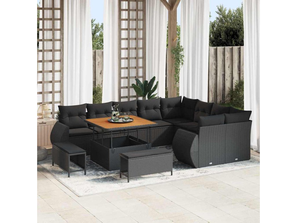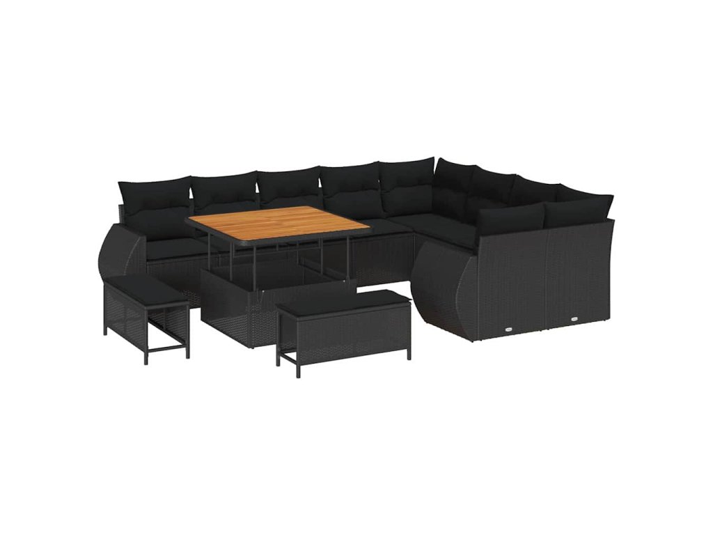 Sada zahradních pohovek s polštářem s úložištěm 12 pcs Černá 3363854