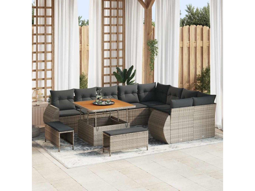 Sada zahradních pohovek s polštářem s úložištěm 12 pcs Šedá 3363858