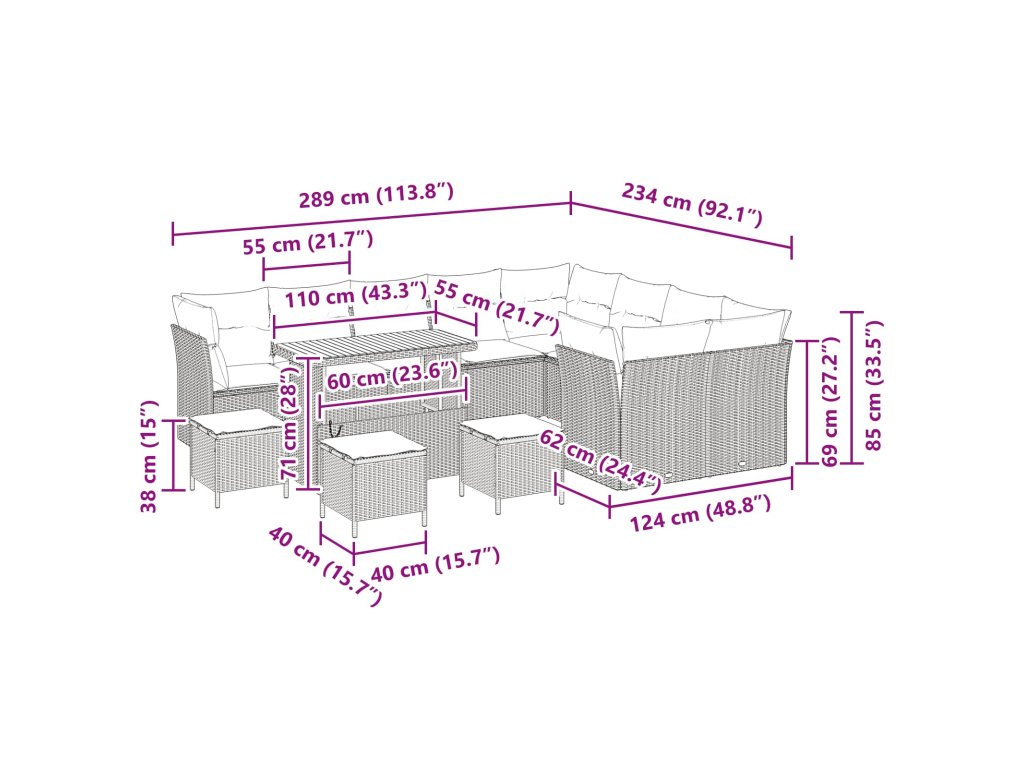 Sada zahradních pohovek s polštářem s úložištěm 13 pcs Černá 3363479