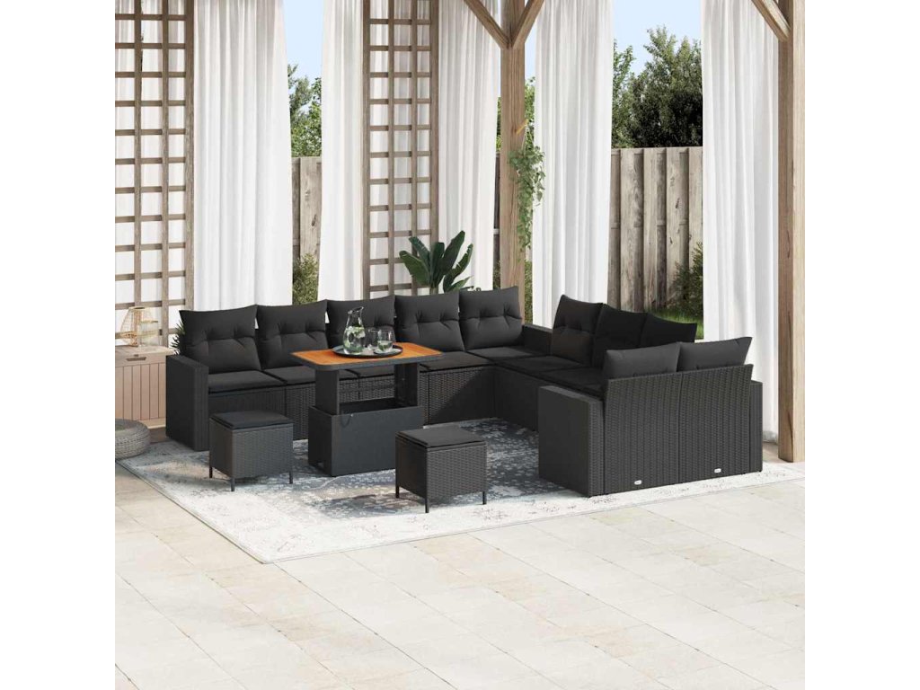 Sada zahradních pohovek s polštářem s úložištěm 13 pcs Černá 3363624