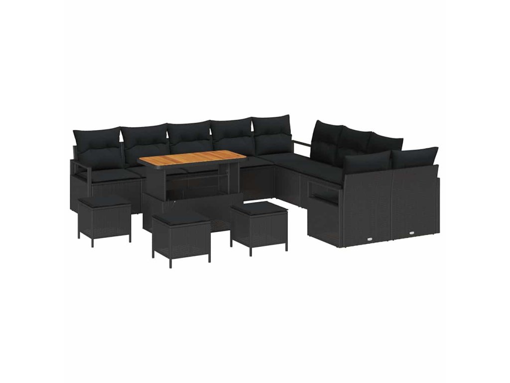 Sada zahradních pohovek s polštářem s úložištěm 14 pcs Černá 3364539