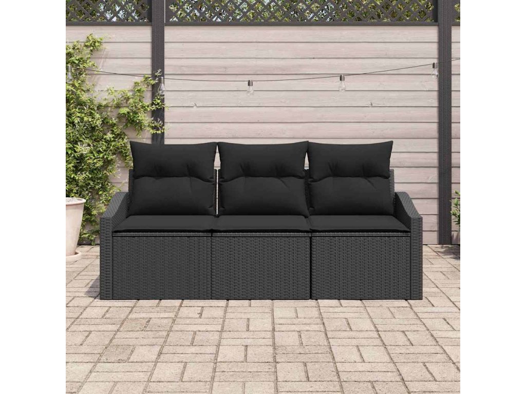 Sada zahradních pohovek s polštářem s úložištěm 3 pcs Černá 3355252