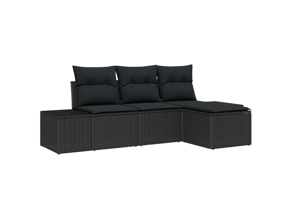 Sada zahradních pohovek s polštářem s úložištěm 4 pcs Černá 3355682