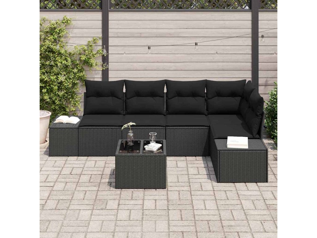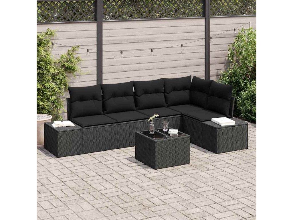 Sada zahradních pohovek s polštářem s úložištěm 6 pcs Černá 3355742